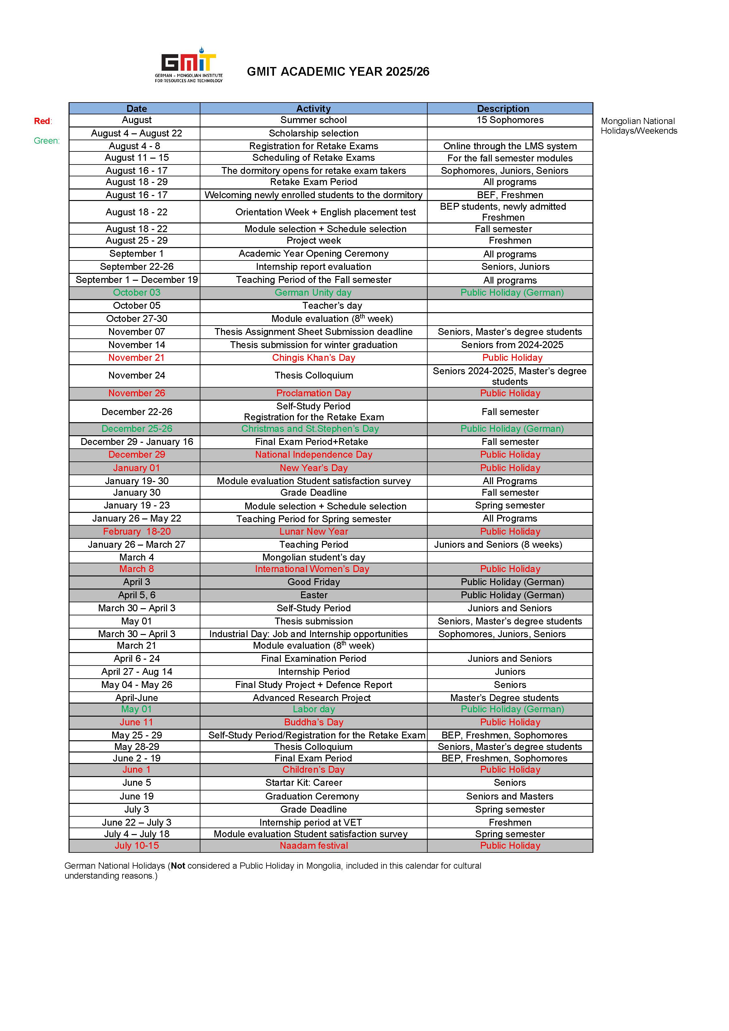 Хичээлийн шинэ жилийн хуанли 2025-2026