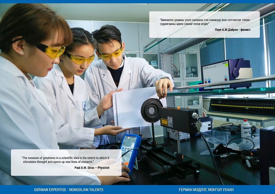 МГТИС-д хими, физик, материал судлал, түүхий эд материал, хүрээлэн буй орчны хяналт болон компьютер тооцоолол зэрэг сургалт, судалгааны зорилгоор ашиглагдаж буй цогц лабораториудыг ажиллуулж байна. Түүнчлэн хамтын ажиллагааны гэрээний дагуу Монгол болон Герман улсын хамтрагч их сургуулиудын лаборатори, тоног төхөөрөмжийг судалгаанд ашиглах боломж бүрдсэн. Ирээдүйд орчин үеийн лабораториуд МГТИС-ийн шинэ хичээлийн байранд байгуулагдах болно.